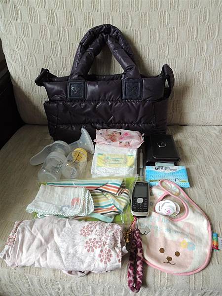 這些就是我平常帶糖果妹出門需要的物品,因為是親餵媽媽,真的很輕便。