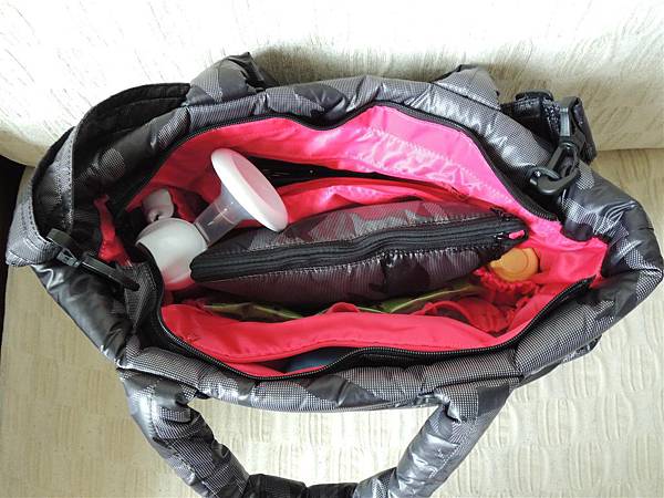 兩側則各有一個可以放奶瓶水壺的固定收納口袋。
