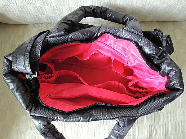 打開之後,裡頭有兩個開放的置物空間和一個拉鍊口袋,