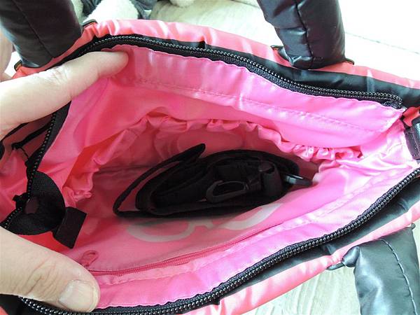 這款包包前方背帶上有作背扣防止揹帶脫落,很棒。