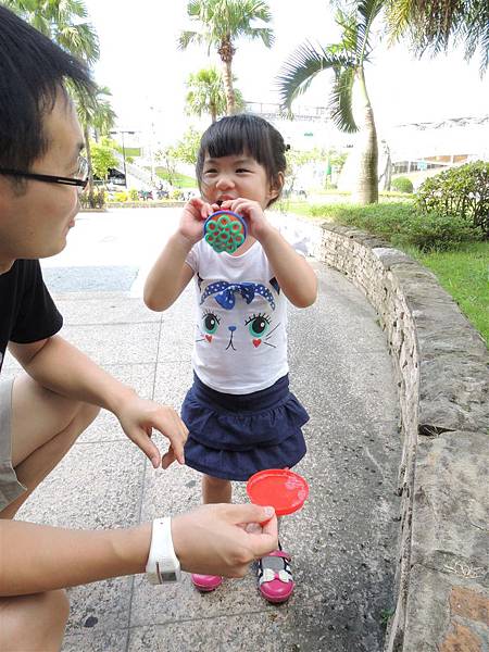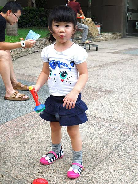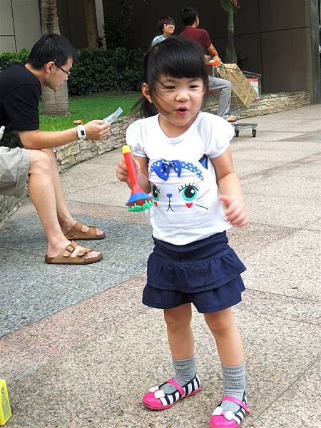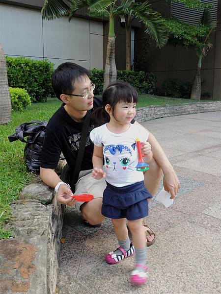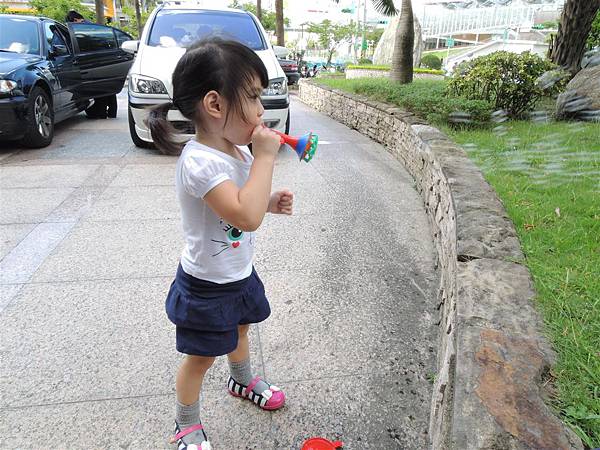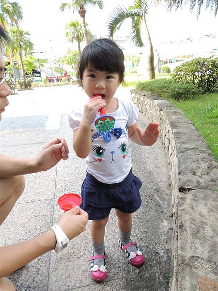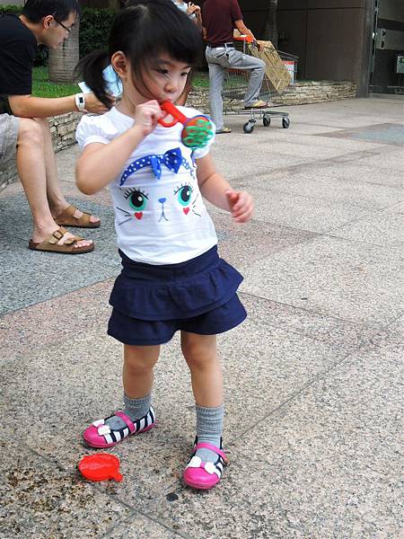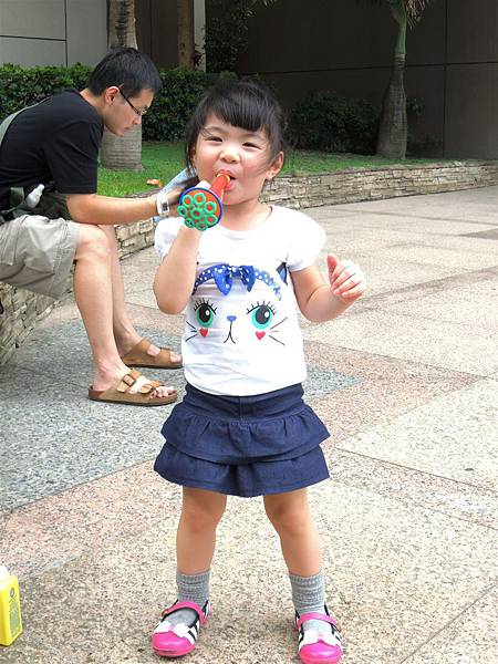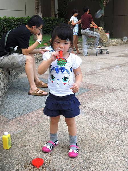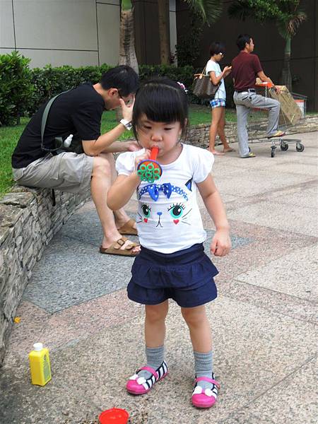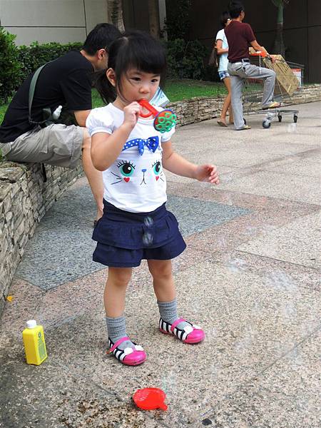 吃完響食天堂之後,我們帶著蘋果去內湖特力和樂外的廣場吹泡泡,