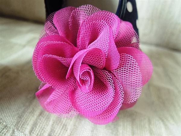 用兩種不同質感的網紗細緻精密組合而成的紫羅蘭花小花,