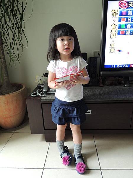 我就搭配了兩雙都適合的上衣和裙子,讓蘋果自己挑要穿哪雙鞋出門,