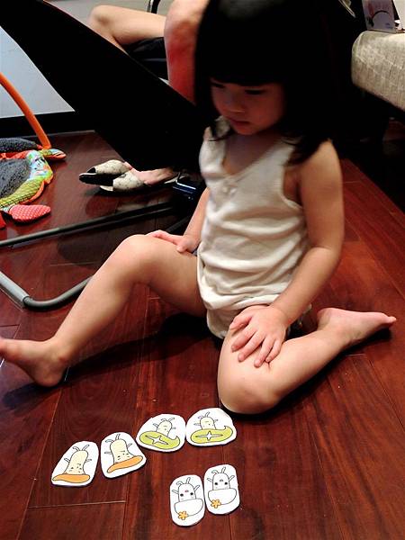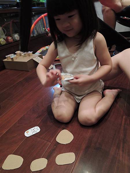 因此,我就利用了這個小紙盒做了一個簡單的記憶配對遊戲給蘋果玩。