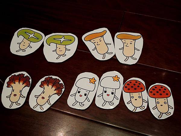 然後請蘋果各自把同樣的菇牌再一起排隊站好,