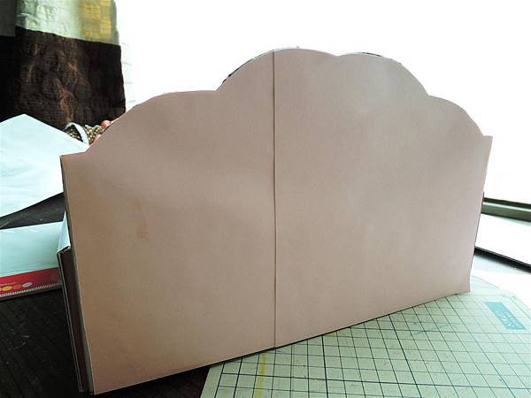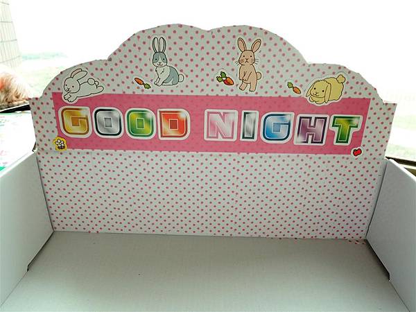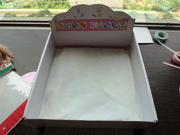 床板後面用粉色的厚西卡紙把紙板遮起來,