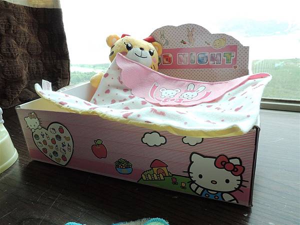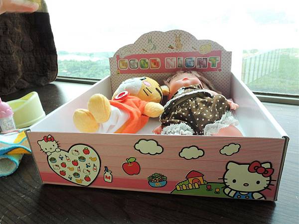 床尾也用麥當勞兒童餐紙盒上的KITTY剪下來黏上去當裝飾,