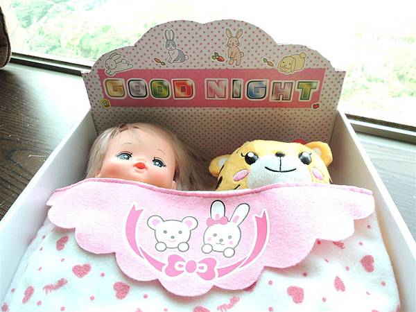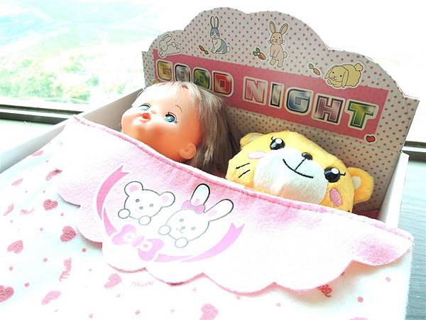 這個盒子的大小剛好足夠放兩隻小美樂大小的玩偶,