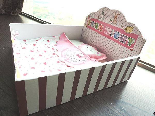 我乾脆就早起利用時間動手幫蘋果作一張小美樂的雙人床。