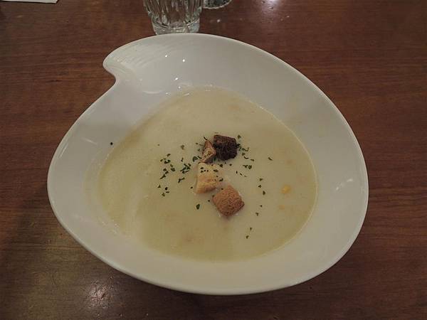 這是蘋果爸的商業午餐附的玉米濃湯,好喝。
