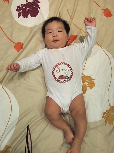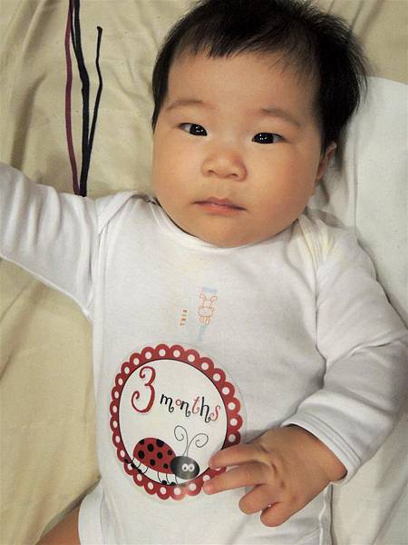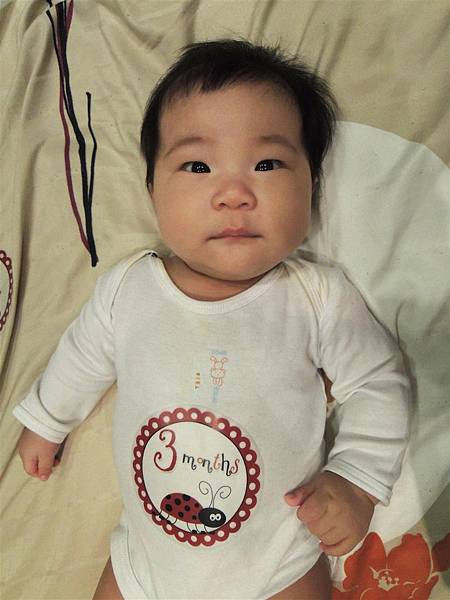 進入三個月,糖果妹已經可以趴翻正、正翻趴都很流利了。