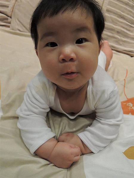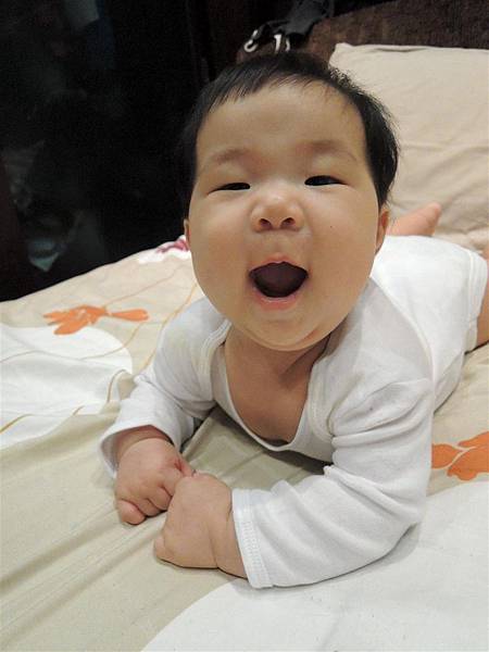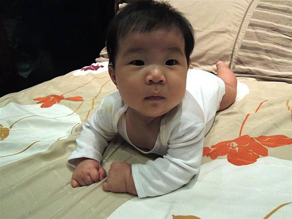 而且糖果妹現在很喜歡趴著抬頭,他會自己翻成趴之後挺起頭來四處張望。