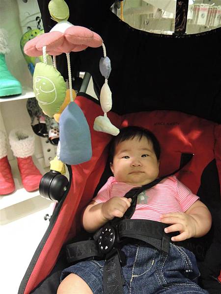 糖果妹也很乖巧的躺在推車裡,