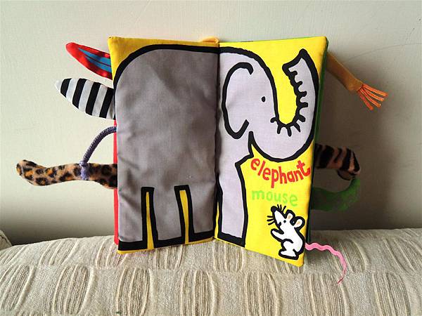 而布書則是用鮮豔可愛的圖案與花色、搓揉上的玻璃紙聲音和clicker按壓之後的動物聲音,