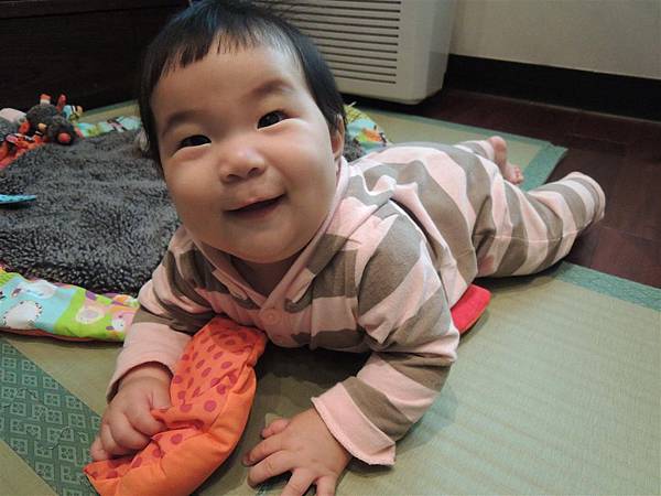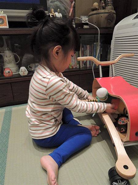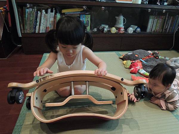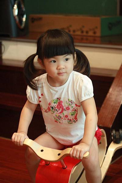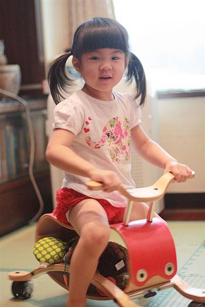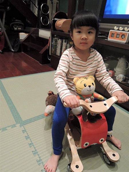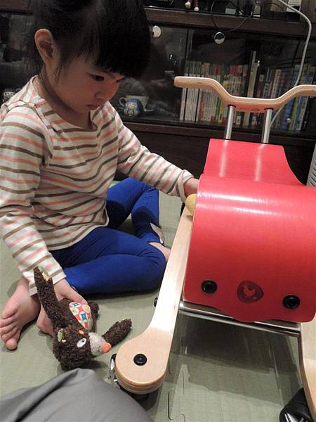 搖搖馬畢竟是木材,所以我還是讓蘋果在地墊上搖比較放心~哈