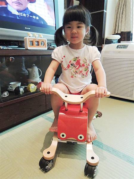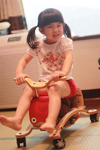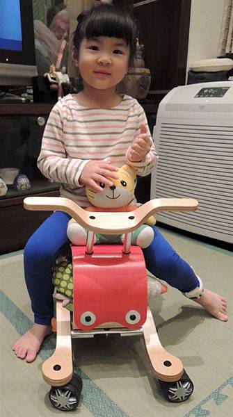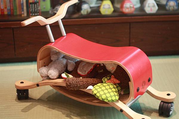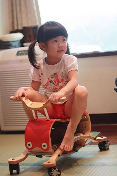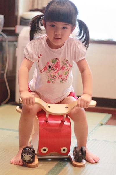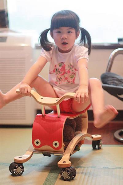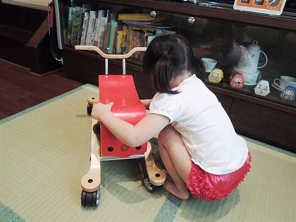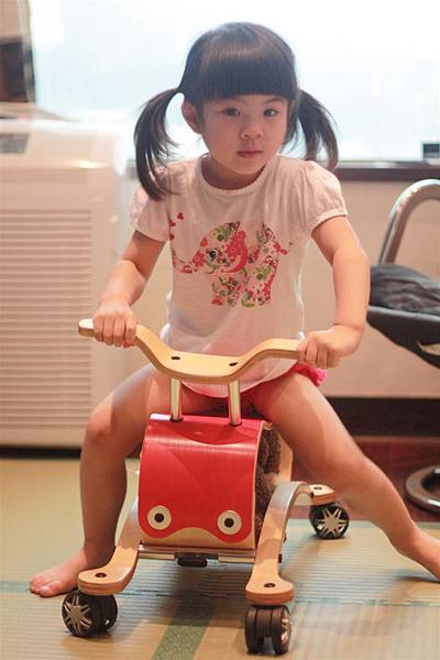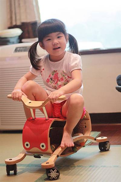 不用五分鐘就可以把搖搖馬切換成四輪車,