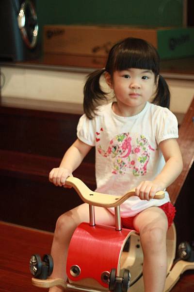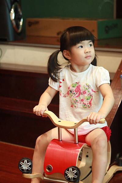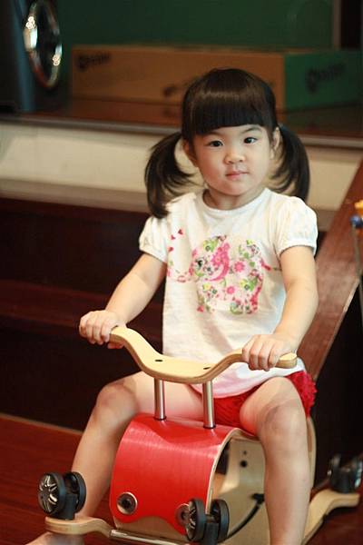 這應該大概是三歲的幼兒示範照:左邊是搖搖馬、右邊是四輪車