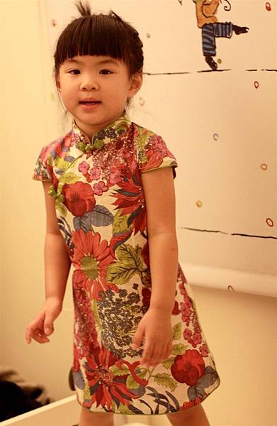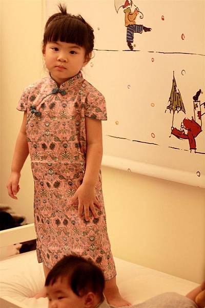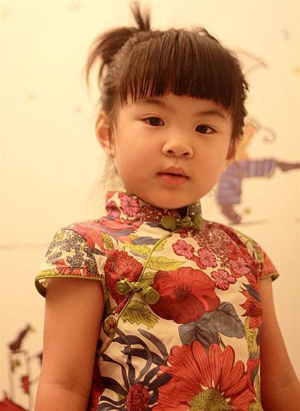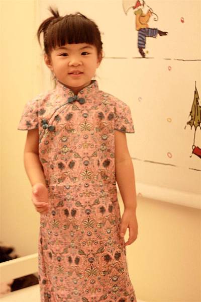 但是我很怕孩子穿上顏色偏藍的文青款旗袍會被蘋果阿嬤叨念說像紙紮人,