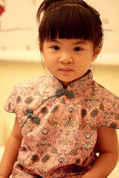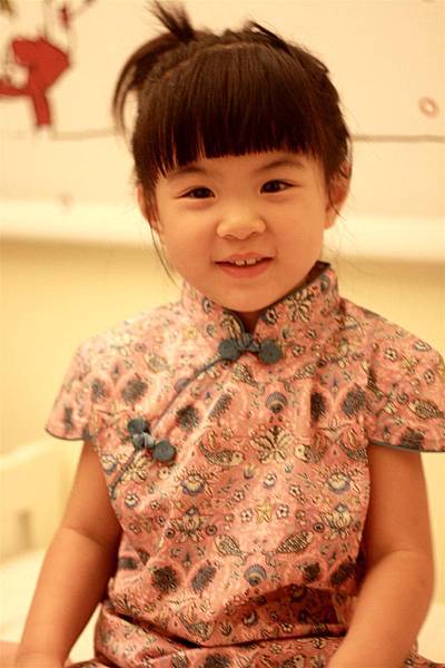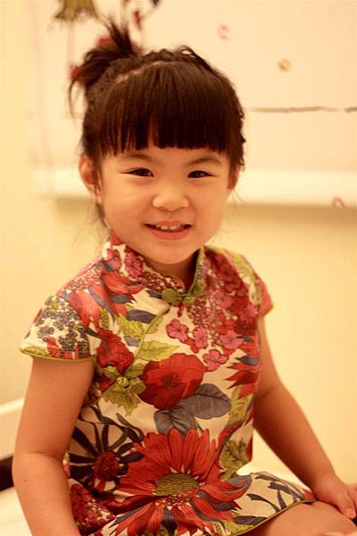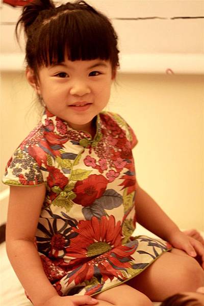 立刻幫蘋果綁了個可愛的丸子頭,穿上兩件旗袍拍照看看,
