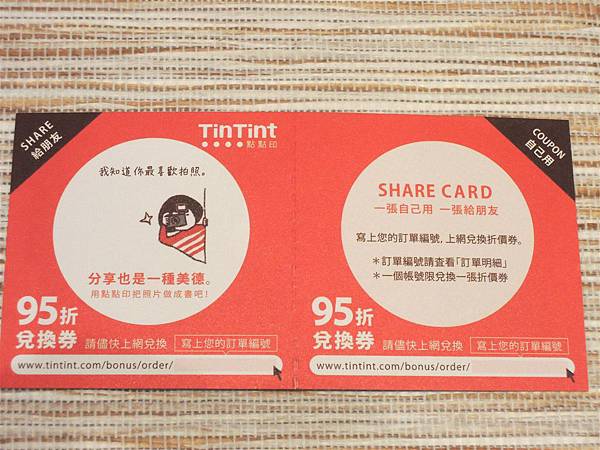 有兩張95折兌換券、老樣子一張瑕疵退換貨用的地址貼紙,
