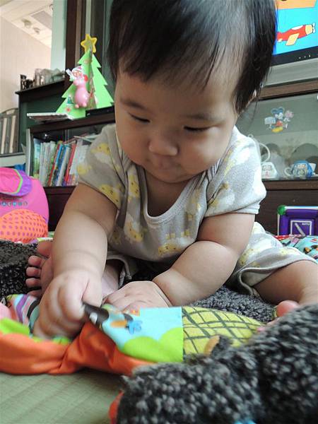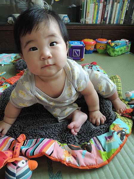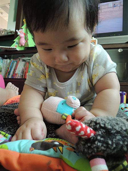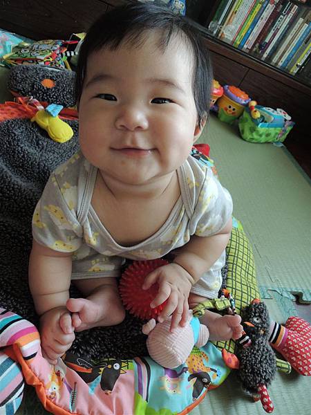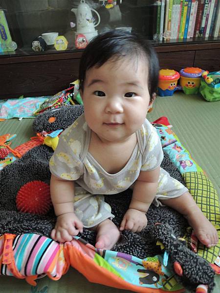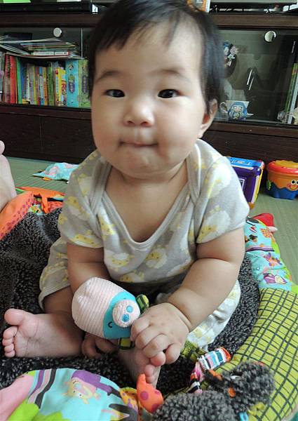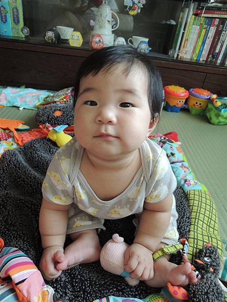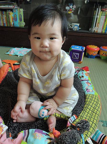 雖然坐的沒姐姐同期穩,但現在也能這樣坐著玩耍,