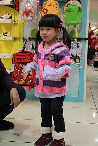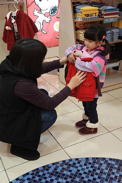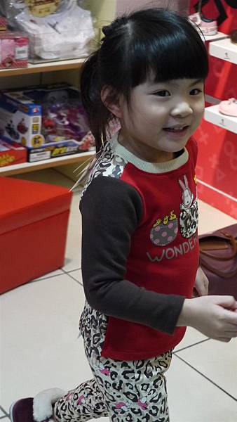在1月9日那天,我們全家一起出動陪著蘋果到百事特石牌店去挑選衣服,