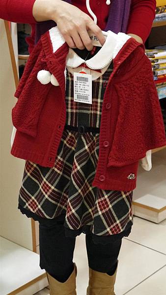 第三套我挑了一件學院風的洋裝、外搭棗紅色的披肩式外套,