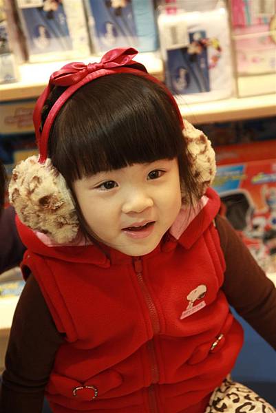 還有一件保暖的紅色小背心和一個超可愛的豹紋毛茸茸耳罩,