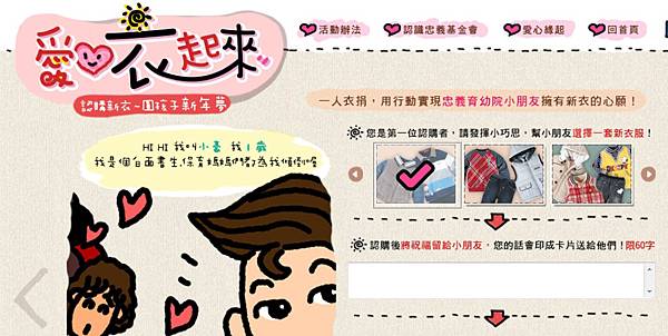 不過她知道:如果我們能一起挑選一套衣服送給小朋友穿,那小朋友一定會很開心的。