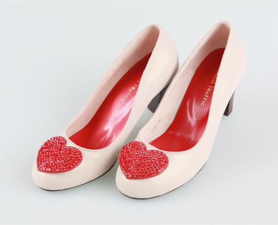 鞋面上的愛心造型立體水晶在燈光的照射下很閃爍,