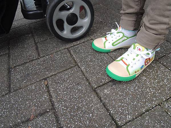 沒有任何選擇之下,我只好讓蘋果買這雙獅子搭配小老鼠的有趣鞋子。