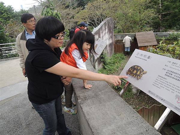 媽媽講解亞洲棕龜給蘋果聽,