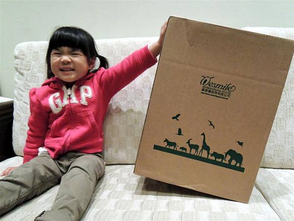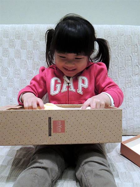 打開盒子,蘋果開心到笑得合不攏嘴,
