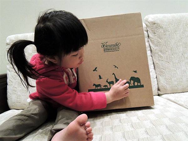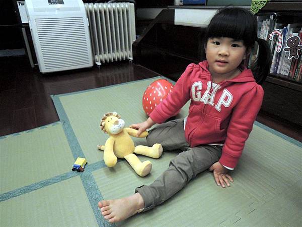 蘋果不玩的時候,我就請她把獅子放回獅子的紙盒床裡,很棒。