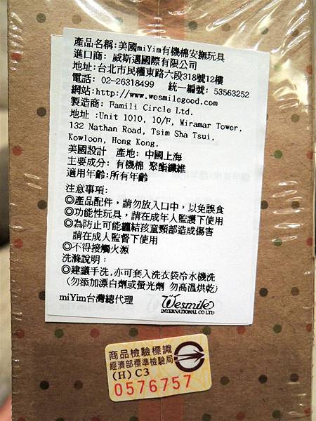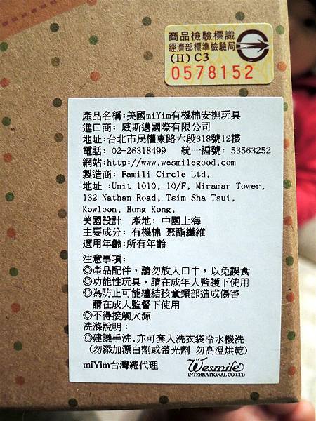 讓我們在台灣就可以用合理的價格、快捷的購物網站買到這麼棒的miYim有機棉安撫玩具,