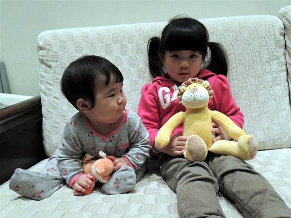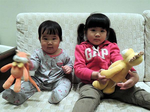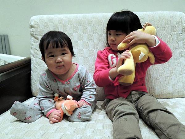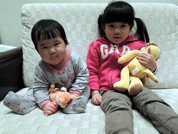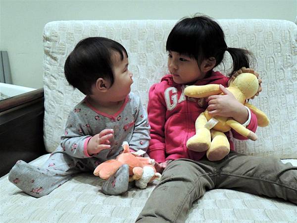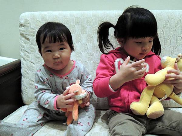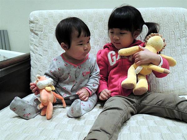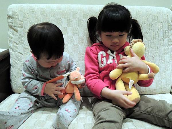 這一大一小的兩隻有機棉娃娃剛好適合兩姊妹各自小手的大小,