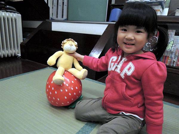 蘋果一看到里歐獅子就開心的又摟又抱的,