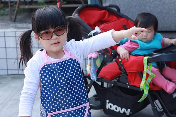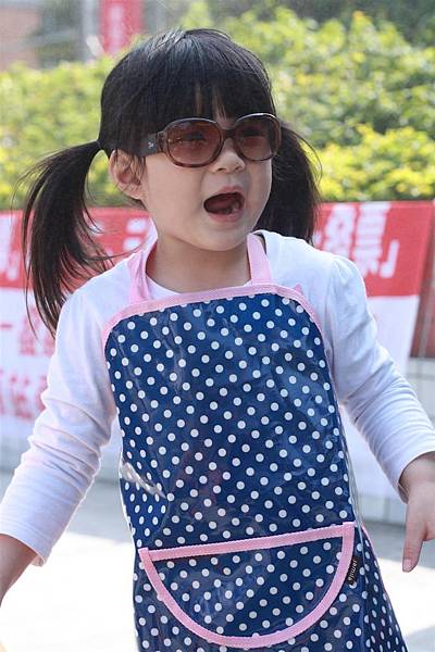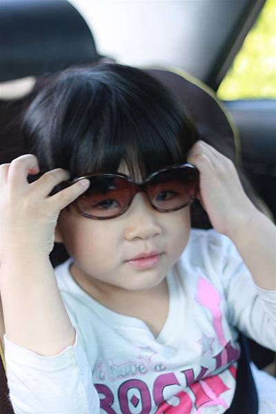 太陽很大,所以蘋果堅持要戴著太陽眼鏡,