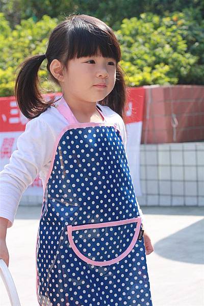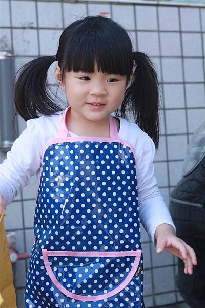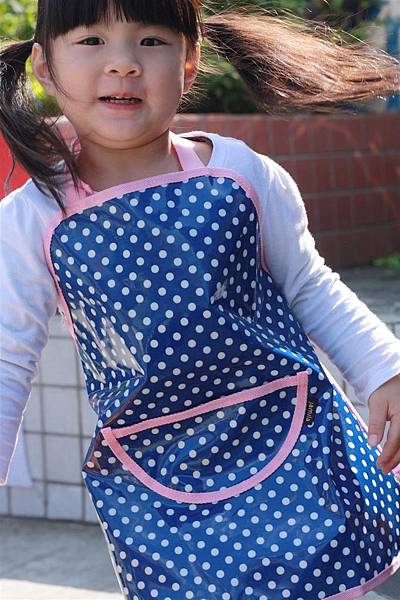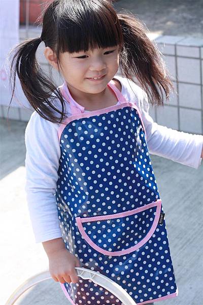 我幫蘋果穿上之前準備B.baby代理進口的日本Jamia防水工作圍裙(有興趣的朋友:請點我),