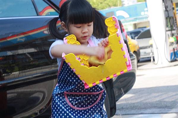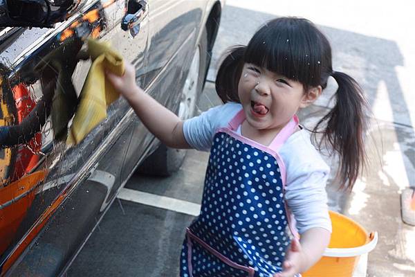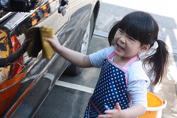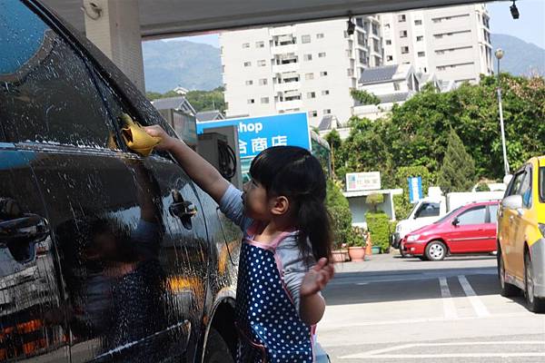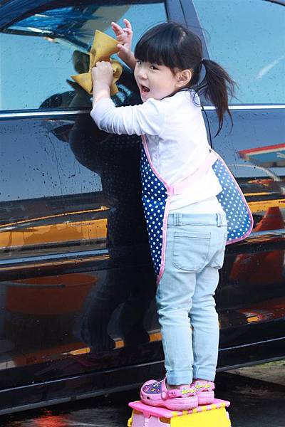 這次的幫車子洗澡初體驗,蘋果好開心~