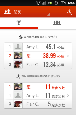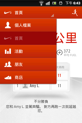 可以在NIKE+APP加入有使用這個APP的臉書朋友,