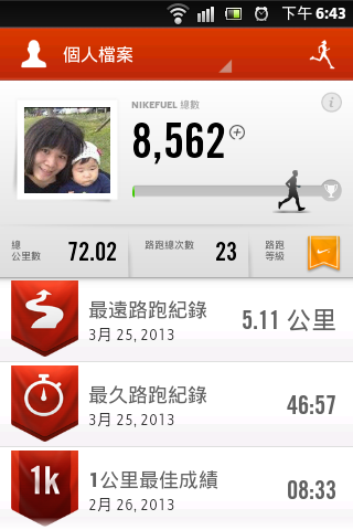 在NIKE+的個人檔案中,除了可以看到剛剛提到的NIKEFUEL之外,