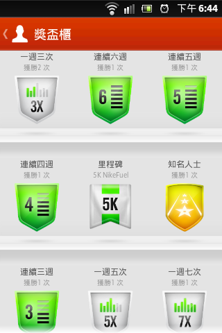 每次運動結束,如果有打破新的紀錄就會出現獎盃,