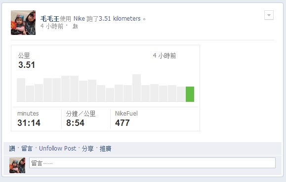 其實我在三月底就已經用手機抓圖把我的NIKE+APP截圖下來想跟大家分享,