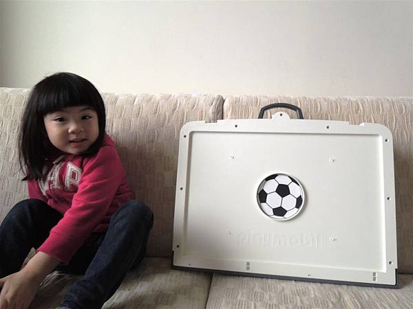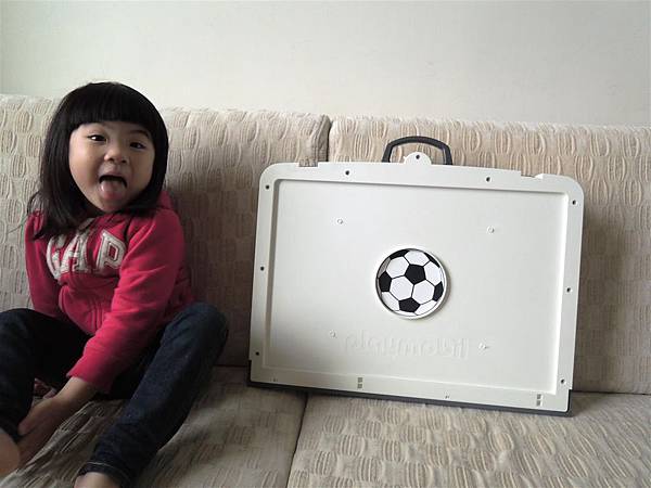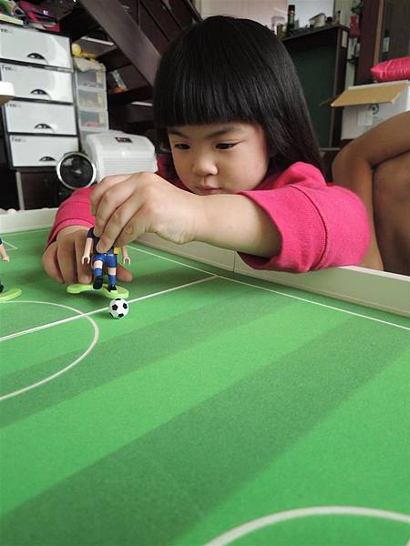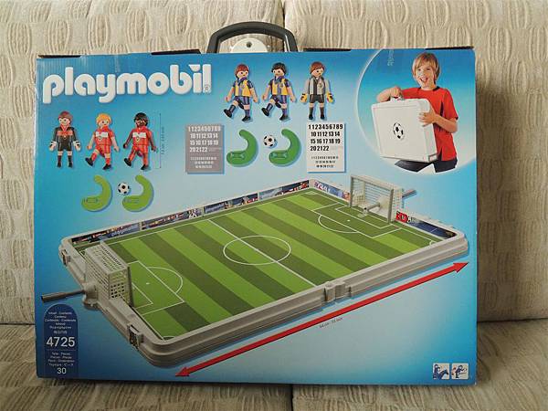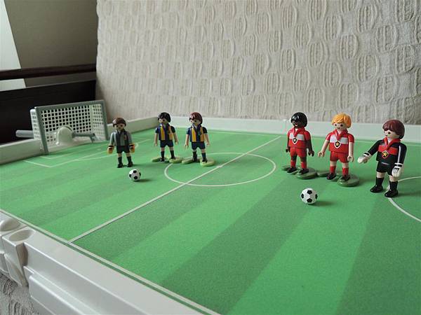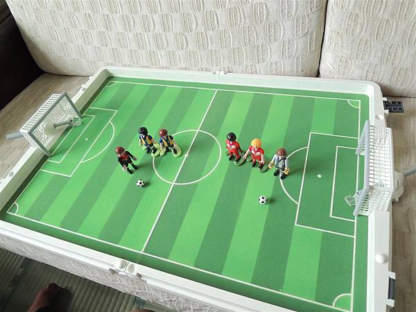 這組是一個大手提箱,拉開就是一個鋪有綠色美麗絨毛草皮的足球場,