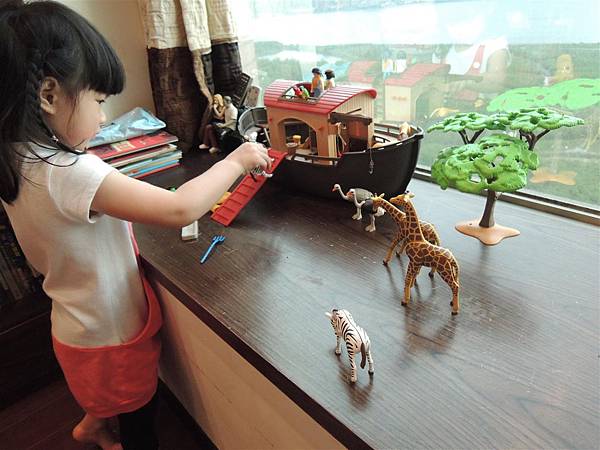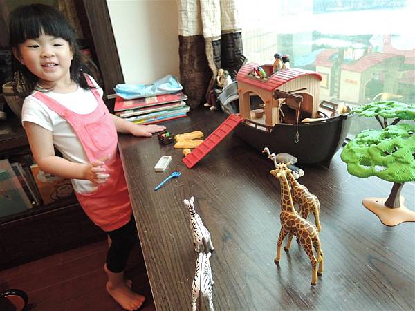 這個玩具還有一個好處就是動物都扔上船去就是收納啦!哈哈哈~