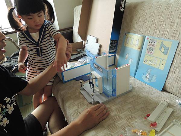 摩比人的說明書寫得很清楚,所以只要照著做就可以把警察局蓋好了~
