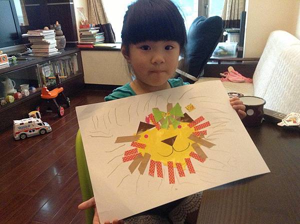 一起用色紙、紙膠帶和色鉛筆共同創作了一隻獅子呢!