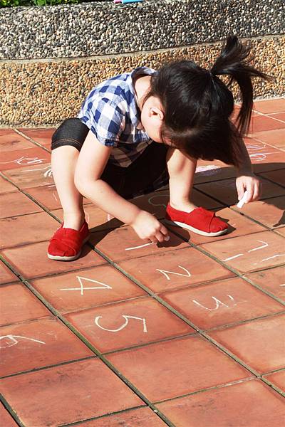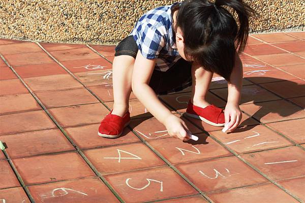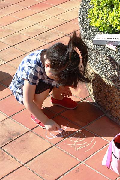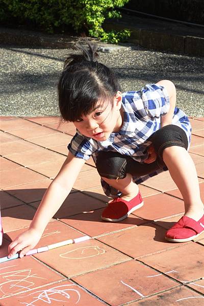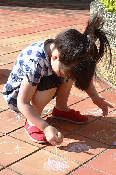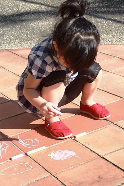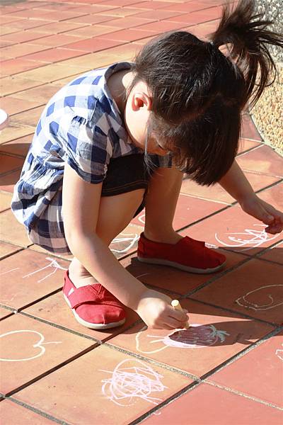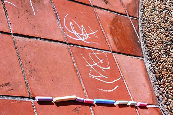 聽聞了粉筆畫完之後只要拿清水一沖、手腳一糊就可以輕鬆清理乾淨,