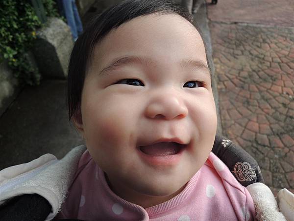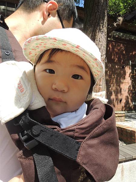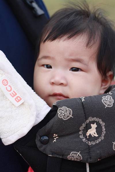 當時四個多月的糖果妹很喜歡揹揹出門,